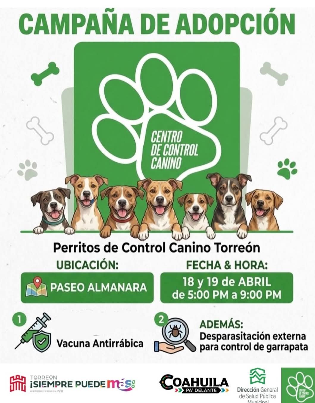 El Centro de Control Canino de Torreón exhorta a la ciudadanía a participar en su próxima campaña de adopción de