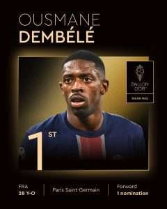 El francés, de 28 años, brilló con el Paris Saint-Germain en una temporada histórica: conquistó la Champions League por primera vez con el club, además de los títulos locales en Francia. Sus cifras también hablaron: cerca de 35 goles y 16 asistencias, sumadas a su influencia en los momentos decisivos.